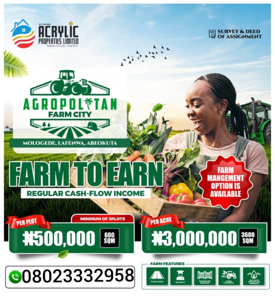 #AgropolitanFarmCity #BountyHarvest #Agriculture #RealEstate #AgroInvestment #FarmEstate #Farming #AcrylicProperties #AgricultureInvestment #fgr #WealthCreation #PassiveIncome #FoodSecurity #FarmToTable